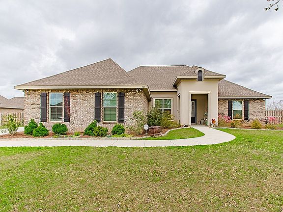 GOLD FORTIFIED CERTIFIED HOME! This split plan offers a master suite on one side of the house that connects to the laundry room through the spacious master closet. Two bedrooms are tucked away on the other side of the back of the house, connected by a Jack and Jill bath. The fourth bedroom is in the front of the house and has a private bath. No CARPET! All hard surfaces throughout the house with engineered wood and tile flooring. STORAGE GALORE! There are hall closets in the entries to all bedroom areas, a coat closet in the mud room with boot bench and custom cabinetry, walk in pantry and a linen closet in the Master Bath. This house features a built-in office ready to use! Special features include tray ceilings in the master, great and dining rooms, heavy molding and trim, custom cabinetry, plantation shutters and custom blinds, tankless hot water heater, extra-large soaking tub and separate walk-in shower, granite counters in the kitchen and bathrooms, stainless appliances including a gas range, wood-burning fireplace, and recessed lighting throughout the house. HUGE laundry room with lots of built-in cabinet space. Wired security system through Hunter Security along with video surveillance. OPEN floor plan and great for entertaining. Covered rear patio with pergola creates a relaxing environment to unwind and smell the fruit tree blossoms that sweeten the air. The continuous sidewalks of the neighborhood are a wonderful place for exercise in a very safe environment. The neighborhood pond provides a fun afternoon of fishing for all ages. About a five minute drive to downtown Fairhope’s legendary shops and restaurants. 2 car garage, LARGE backyard with privacy fence, and attic space accessible from the garage. Elementary School: Fairhope East Middle School: Fairhope Middle High School: Fairhope High