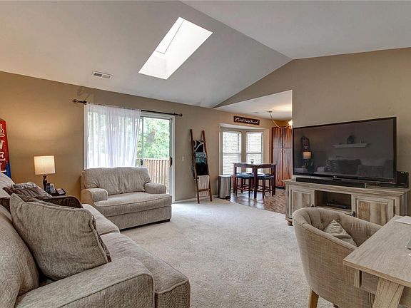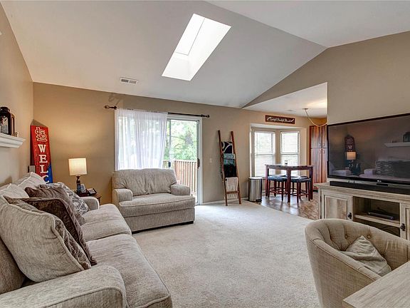 This move-in-ready top-floor condo in St. Peters is one you won't want to miss! You'll love the bright, open feel of the living room with vaulted ceilings and a skylight. The living room opens to the eat-in kitchen with a bay window and plenty of cabinet space. Two bedrooms, a bathroom, and convenient laundry area round out the space. Grill on the deck overlooking common ground shaded by large trees. You'll have a storage locker, two assigned parking spaces, plus access to the pool and clubhouse. Moments from parks, highways, shopping, and restaurants, this home is just waiting for its new owners! Location: End Unit, Suburban, Upper Level