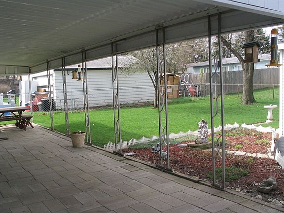 All the appliances stay in this freshly painted cozy ranch with 3 bedrooms, 1 bathroom, and warm eat-in kitchen. New flooring in kitchen and bathroom. Vinyl siding and roof only 2 years old. Huge covered back patio. Large driveway leading to a recently redone 2 car garage. Many flower beds with perrenials. Prequalified buyers please. Easy to show, Must see. Close to library, and schools.
