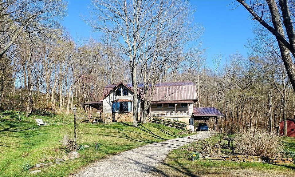 Stunning views from this one of a kind home situated on 7.6 acres, complete with a pond. Located in Unioto School district. This home is ample size for larger families. The main living area is complete with 2 bedrooms and 1.5 baths, cathedral ceilings, and an open concept. Upstairs you will find two more bedrooms plus two additional large living areas which are perfect for kids play areas, work space, or a home gym. The roof is under two years old, new heat pump, new hot water tank, and brand new Leaf Filters ($4,000) installed. Selling AS-IS. Contingent on seller finding suitable housing.