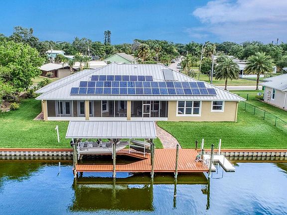 10 Ft DEEP WATERFRONT-BRING YOUR LARGE BOAT! *SALT WATER POOL & SPA PLAN AVAIL. 2011 FULLY CUSTOM SOLAR Dream Home w/ LARGE COVERED DOCK w/ Water/Electric, BOATLIFT, Seawall w/ 5' Tie Backs, KAYAK LAUNCH DOCK, Hurricane Windows, Metal Roof, 50FT Screen Porch, Luxury Pool Plans, Paver Driveway, Walkways, Patio. New Exterior Paint. Brazilian Cherry Floors/Sills, & Tile. Gourmet Chef's Kitchen w/ Custom Soft Close Cabinets/Drawers, High End Stainless Appliances Incl. New Sub-Zero Fridge & Stainless Stove Vent, Double Ovens. Master Suite w/ Water Views, French Door to Patio, Custom Closets. Solid Core Doors, Duel A/C, Duel Solar Hot Water Heater, Foam Insulation, Termite Bond. Each Bedroom w/ Private Exquisite Bath. Soaring Ceilings, Custom Fans, Recessed Ltg, Duel Sewer Drains to Street.