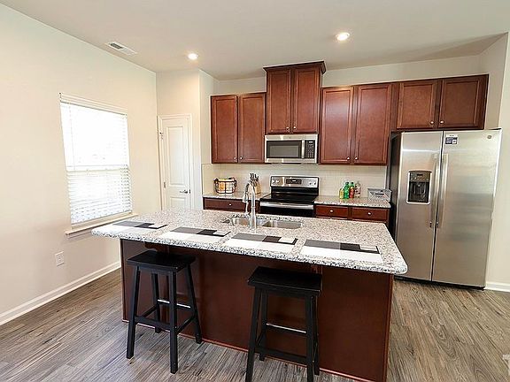 You will love this open concept 3 bed, 2.5 bath w/1 car garage floor-plan. As good as new this home is complete w/a finished bonus-room on ground-level w/walk-out patio, washer, dryer, video door bell & installed home security. The back yard has a natural area and all yard maintenance is included! Great location walking distance to to all of Fuquay's "Fun Stuff!" Bike or walk to Historic Fuquay Springs, shopping, coffee shops, breweries, bakery, Fuquay's Splash Pad, dog park, library, restaurants, parks, and more!