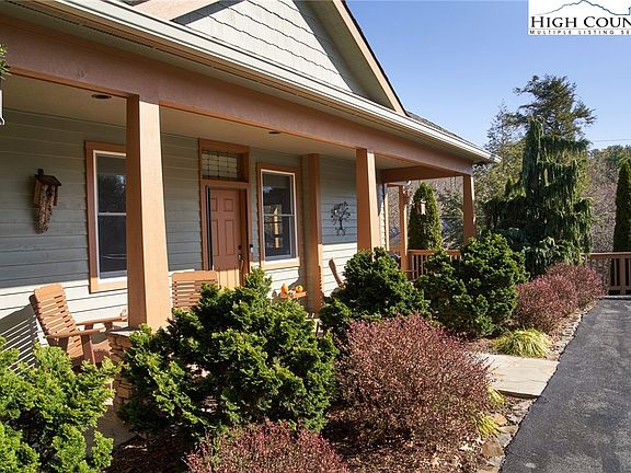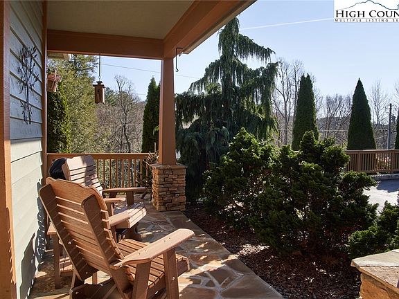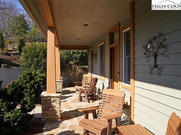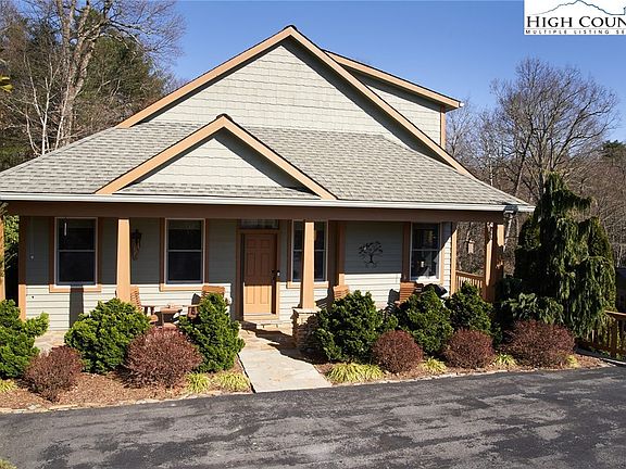 Drenched in natural light & natural wood, this contemporary mountain home offers elegance & a superior location - a short walk/golf cart ride to the Blowing Rock Country Club. Step over the threshold into one level living with 9 foot ceilings throughout. Cozy living room has stone gas fireplace with a wall of east facing windows. Anderson windows flip in to clean. Home office is on your left. Kitchen stocked with new appliances, high-end cabinets & shelving storage. It has a pass-through to the dining room. The primary suite is located on the main floor with a walk-in closet for her and double closets for him. Primary bathroom has double vanities, new custom tiled shower & a bathtub. The panoramic view windows in den offer a beautiful view of woods & Green Hill mountain, a quiet location for movies in the evenings. Laundry room is on the main level. Walk downstairs to two roomy bedrooms, with private baths & outside entrance - perfect for guests, loading & unloading. Tons of storage in a separate storage room. This property is located about 10 minutes from the Blue Ridge Parkway or Bass Lake. 1 mile stroll to the village. Watch the 4th of July fireworks from the balcony!