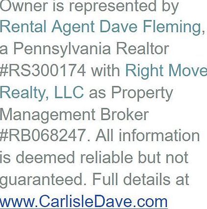Options for furnished or unfurnished! This 2,130sqft home features first floor laundry, an eat-in kitchen, a formal dining room, full basement, 2-car garage parking, and a sizeable fenced backyard. It comes partially furnished and is pet friendly subject to approval. Rent includes partial electricity provided by the existing solar panels. Great location near everything Carlisle has to offer plus easy access to the Army War College, Dickinson and Dickinson Law School, the Turnpike, and I-81. Full details at CarlisleDave dot com. Rent includes seasonal landscaping and electric, to a cap, via solar panels... Unfurnished... Tenant is responsible for electric over cap, water, sewer, trash, lawn care, and snow removal. Sorry NO smoking. Pets will be considered on a case by case basis subject to owner approval. Tenants must provide up to date vet records, flea medicine receipts, and licensing documentation upon request. An increase in rent and/or an additional refundable pet deposit may be required. Owner is represented by Rental Agent Dave Fleming, a Pennsylvania Realtor #RS300174 with Distinctive Property Management, LLC as Broker #RB070109. All information is deemed reliable but not guaranteed. Full details at CarlisleDave dot com