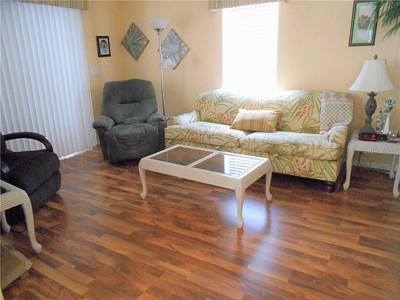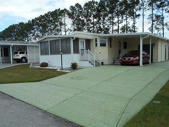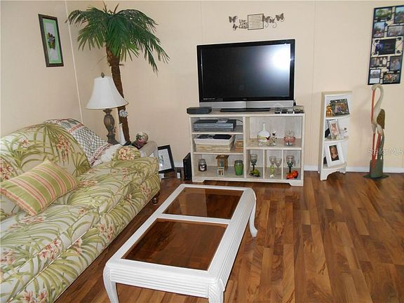 Nice two bedroom two bath home located in a 55+ golf and waterfront community. As you step inside, your view spans the living/dining/kitchen area showing the openness of this home. The kitchen has lots of cupboard storage, a front facing window, and a dinette counter. The living room opens to the front facing Florida Room (extended 4'). The laundry is located behind louvered doors in the bedroom hallway. The master bedroom has a large closet and spacious bath. The 2nd bedroom has a separate bath. The attached extended storage shed will accommodate a golf cart and more. There is plenty of parking with the addition of parking on the right side of the home. Roof installed 2009 and new plumbing 2018. This park operates under co-op rules so you own a SHARE of the park. The HOA fee is $123/mo and $23/mo for lawn mowing, if you wish. Sellers have priced this home to sell, so be sure it's on your quick short list.