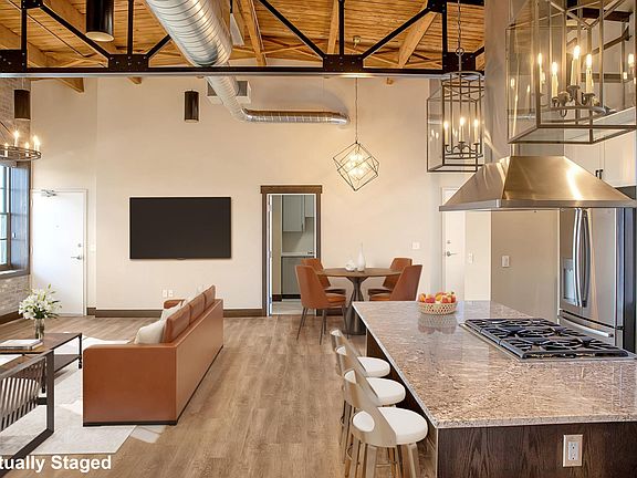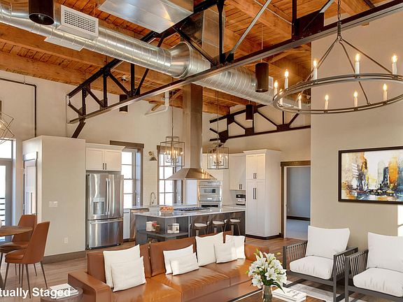 Come check out this stunning Downtown Executive Loft Apartment that is truly one of a kind! Located in an up & coming neighborhood within walking distance to shopping, restaurants & bars. The newly remodeled warehouse space has retained it's historic vibe with many upgrades. This one bedroom with a den option has top of the line finishes including granite countertops, custom window coverings, & immaculately tiled bathrooms that you won't want to miss! The lighting is showstopping and accentuates the exposed brick, wood floors and high ceilings that are original to the building. The kitchens feature stainless steel appliances, a farmhouse sink, beverage cooler and an oversized center island with plenty of seating. The master suite includes heated bathroom floors, under cabinet lighting and walk-in closets. A private deck space with an awning is great for relaxation & You'll also enjoy a future connection to the city's recreation trail right out your door. Include Water, real estate taxes, building insurance, snow removal. Heated parking space will be available for $100/month at the future Railyard Flats.