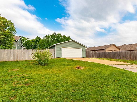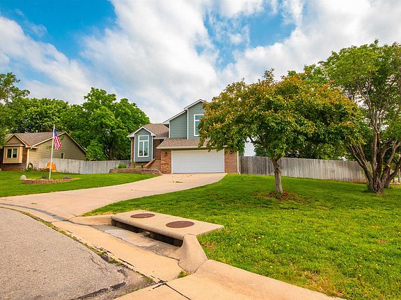 Beautiful split-level home on a corner lot in Derby! This dream home offers four levels with 4 beds and 2.5 baths on a large corner lot - close to country clubs, parks, and more! There's room for all the cars and toys in the attached 2-car garage AND the climate-controlled, oversized 2-car garage with its own separate driveway. The elevated entryway leads to a large, vaulted great room with a picture window and a spacious kitchen featuring new quartz counters, new tile backsplash, natural stained cabinets, a nearby cozy breakfast area, and full pantry. You'll love the primary bedroom's vaulted ceiling, walk-in closet, and en suite bath with twin vanity and a full-sized tub! Two more bedrooms on the upper floors share a full bath with tub. The lower level of the home features a large family room with fireplace and French door access to the rear patio as well as a half bath, laundry room and storage. Step down to a fourth bedroom - which could be a home office or bonus room. A full privacy fence encloses the large backyard. Mature trees provide ample shade in the well-maintained lawn complete with a sprinkler system and irrigation well. The climate-controlled garage provides great space for a workshop or storage for tools and heavy equipment. There's a separate shed for additional storage and lawn tools. Live in a beautiful community, walking distance from Derby Elementary. Other nearby popular establishments are the Woodlawn Park, Derby Golf & Country Club, and Stone Creek Disc Golf Park. You'll find plenty of shopping and dining options along nearby Rock Rd and Patriot Ave. Call us to schedule an exclusive showing of this beautiful home today!