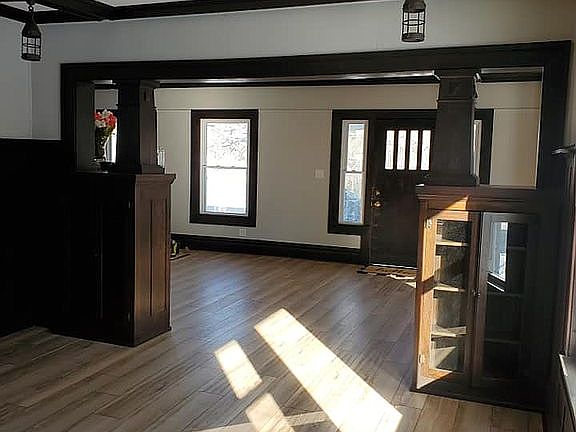 3 Bedroom 2 Bathroom Single Family Home (1796 sq. ft.) New 21 x 24 ft. 2-car detached garage New gas furnace and central air conditioning system New electric water heater New pex plumbing and new roof in 2013 Newly remodeled kitchen with new quartz countertops and cabinets and new appliances Original woodwork Original china cupboard in dining room Original built-in cabinetry divider between dining and living rooms Original stained glass windows Original fieldstone fireplace 200 Amp electric Unfinished basement 898 sq. ft. Large unfinished walk-in attic Sits on 132 x 66 ft. lot