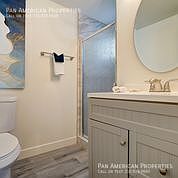 *New Bathroom with designer tile, hardware and cabinets with lots space and a beautiful vanity.