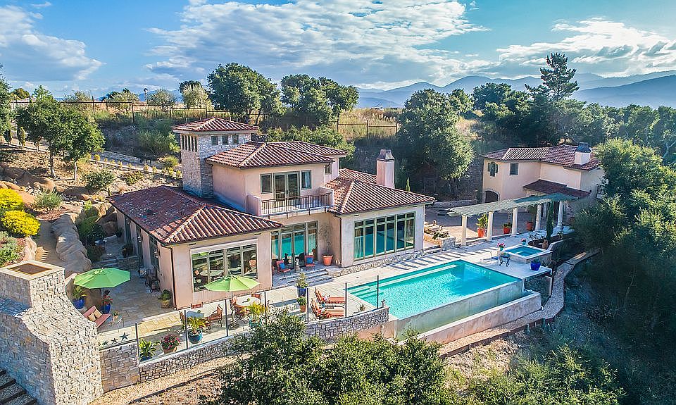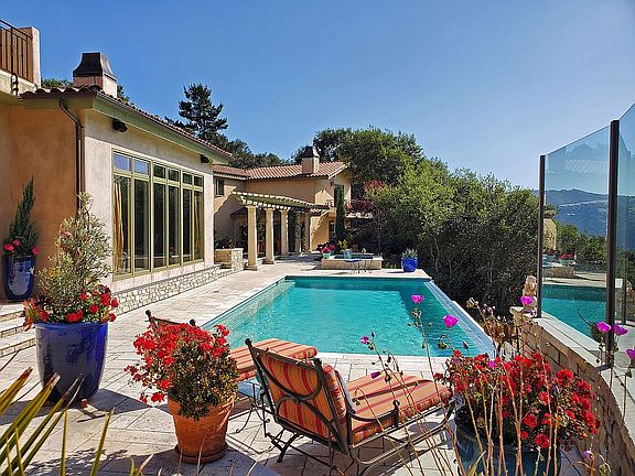 VILLA BELVEDERE ~ A TASTE OF TUSCANY ~ Nestled on a sun-drenched Carmel Valley Village hilltop in the heart of Carmel Valley wine country. The dramatic setting of this country estate with Italianate Palazzo, has unparalleled and breathtaking 270 degree panoramic vistas south and west of the Santa Lucia Mountains and Pacific Ocean. Custom designed by architect Robert Hayes, Sausalito, CA, and completed in 2006, the quality of materials and attention to detail are evident along with the sophisticated craftsmanship. The European–style and old world flair of the main house has an open and flowing floor plan, floor to ceiling windows, hand hewn waxed beams, radiant heat and William Ohs kitchen. Three generous en-suite bedrooms, two on the ground floor, plus a second story 1,000 sf master bedroom suite. The private, detached 922 sf guesthouse has two bedrooms, one bath, kitchen living room and fireplace. Other features include, infinity pool and spa, grand outdoor fireplace, oversized three-car garage, European style terraced gardens, a small hobby Pinot Noir vineyard, a new private well- completed in October 2019 producing 10-12 gallons per minute- and a 5.3 kilo watt per hour solar voltaic system. For more photos and details about this unique custom home please visit: VILLA BELVEDERE ~ A TASTE OF TUSCANY ~ Nestled on a sun-drenched Carmel Valley Village hilltop in the heart of Carmel Valley wine country. The dramatic setting of this country estate with Italianate Palazzo, has unparalleled and breathtaking 270 degree panoramic vistas south and west of the Santa Lucia Mountains and Pacific Ocean. Custom designed by architect Robert Hayes, Sausalito, CA, and completed in 2006, the quality of materials and attention to detail are evident along with the sophisticated craftsmanship. The European–style and old world flair of the main house has an open and flowing floor plan, floor to ceiling windows, hand hewn waxed beams, radiant heat and William Ohs kitchen. Three generous en-suite bedrooms, two on the ground floor, plus a second story 1,000 sf master bedroom suite. The private, detached 922 sf guesthouse has two bedrooms, one bath, kitchen living room and fireplace. Other features include, infinity pool and spa, grand outdoor fireplace, oversized three-car garage, European style terraced gardens, a small hobby Pinot Noir vineyard, a new private well- completed in October 2019 producing 10-12 gallons per minute- and a 5.3 kilo watt per hour solar voltaic system. For more photos and details about this unique custom home, please visit: https://www.424elcaminito.com/