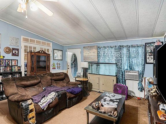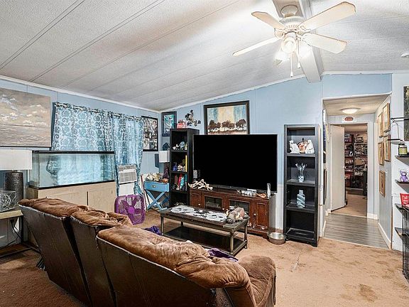 This large modular home boasts 5 bedrooms and 3 full bathrooms and is one of the largest homes in the neighborhood, complete with 2 master bedrooms. Inside you'll find a spacious living area, with a formal dining room and cute country kitchen. Sit back and relax on the covered back patio. This home is close to town, but far enough out that you'll still feel like you're in the country. Close to interstate 75. Replacement carpet and tack strips included for the living room area. New roof completed 2023. Property also includes a detached 2 car garage/workshop that can easily be reconnected to power, water is already connected. Washer, dryer, oven/range combo, refrigerator included. This home would make a great investment opportunity. Call me or your favorite agent today for a showing.