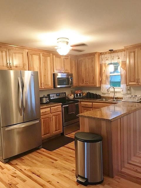 Completely renovated home with hardwood floors and custom hickory cabinets. Everything is new on main level. Basement has a 11x12 room used as a bedroom. New windows, new doors, new bathrooms, new kitchen with stainless appliances. Vinyl fenced yard. Beautiful view of hills.