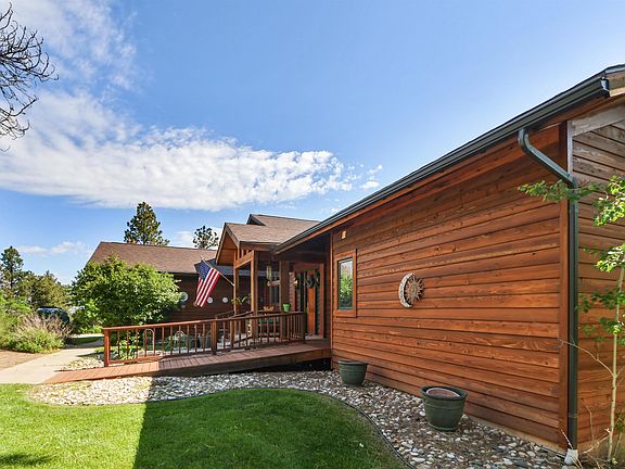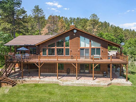 Contact Jason Tysdal 605-641-7260 or Rick Tysdal 605-641-1030 at CENTURY 21 Spearfish Realty for more information. Discover your dream home in the serene setting of the Black Hills, perfectly positioned above the picturesque Spearfish Canyon in Mountain Plains II. This custom-built home exudes “Black Hills Living” inside and out! The welcoming covered front entry takes you into a spacious Great Room, highlighted by soaring floor-to-ceiling windows that flood the space with natural light and showcase a magnificent stone chimney with a wood-burning fireplace. The open layout on the main floor is designed for both entertaining and everyday living, featuring a formal dining area and a kitchen designed for convenience with cherry cabinets and rich Red Oak floors under vaulted ceilings. The redwood deck stretches along the entire length of the house, providing seamless indoor-outdoor living with easy access to three rooms on the main level. The deck also boasts stunning views of the Black Hills, Spearfish Canyon Rim, Bear Butte, and the South Dakota Prairie. But you don’t see a single neighbor! The primary suite is a private sanctuary, offering an abundance of closet space, a luxurious soaking tub, a walk-in shower, and direct access to the deck. Two additional rooms and a conveniently located laundry area complete the main floor. The finished walkout basement includes an extra bedroom, a full bathroom, and a spacious family room with another fireplace.