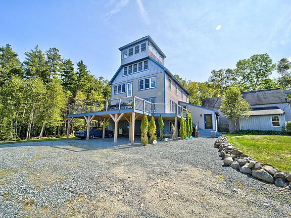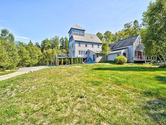 Spacious 4-level property at the end of Flye Point with gorgeous views of Blue Hill Bay towards Blue Hill Mountain. Open concept kitchen with gas cook top and double ovens, island, breakfast bar, and pantry. Main floor flows out on to a spacious deck for inside/outside living. Master bedroom w/ walk in closet, jacuzzi tub and shower; as well as two guest bedrooms and separate guest bathroom located on the second floor. Third floor includes an open office area, large bedroom, and bathroom. 2-bedroom 1.5 bath guest house adjacent to main house. Brooklin is a picturesque, year-round community on the coast of Maine close to Acadia National Park and Deer Isle.