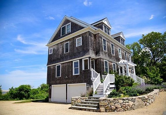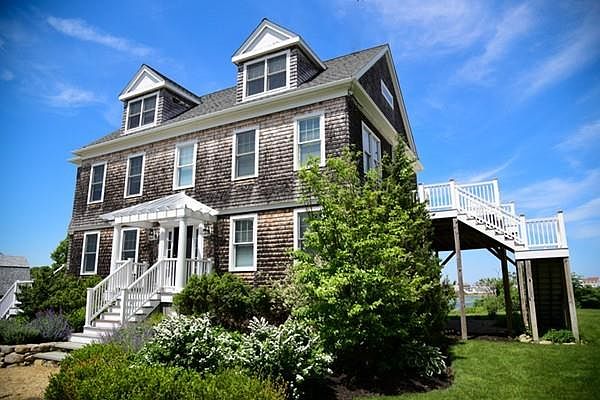 Smashing Nantucket Shingle Style Colonial in Minot with panoramic views of Musquashicut Pond and the blue Atlantic. Rolling green grass among colorful seaside plantings. Four levels of living with light and bright banks of windows. Main entrance includes a sitting room, family room, 2 bedrooms and full bath. Open staircase to the main living level which is a fantastic great room with gas fireplace, dining room and chefs gourmet kitchen, half bath and sliders to entertainment size deck all overlooking the water. Staircase to top floor will enjoy a spacious master suite, master bath and additional bedroom. Full basement has game room, access to 2 car garage and back yard mud room. Gas heat, central air conditioning, outside shower, town sewer and beautiful quality construction.