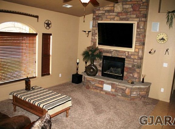 MOVE IN READY! This home is clean, very well maintained and comes with a 14 month Home Warranty! Large open kitchen/dining area with 2 breakfast/bar areas, plenty of cupboard space, pantry. Split bedroom design and 2 full baths. Beautiful neutral colored tile and carpet throughout, high ceilings with plant shelves above waiting for your decorating style. Granite tiled counters in baths and kitchen. Master bath plumbed for 2 sinks if that is your preference and also has inviting garden tub! Easy maintenance yard, with extra parking +RV parking behind the fence and a dog run separate from back yard. Privacy fenced in back with covered patio leading off dining and kitchen area, sprinklers front and back. Call this place HOME FOR THE HOLIDAYS- IT IS A MUST SEE!