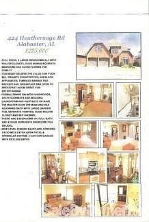 This home was purchased by our family new in 2006. This 4 or 5 bedroom house with 2.5 baths is something to see. Not far from Birmingham in a quiet safe subdivision. .................................................................................................................. 2 story Brick Gaslog Firplace Carpet Hrdwood Tile Gas Heating Catherdral Ceilings Fenced, CoveredPatio, OpenPatio Amenities: Sidewalk Walking Paths Private Lake Shelby Co Schools 2 Car Garage