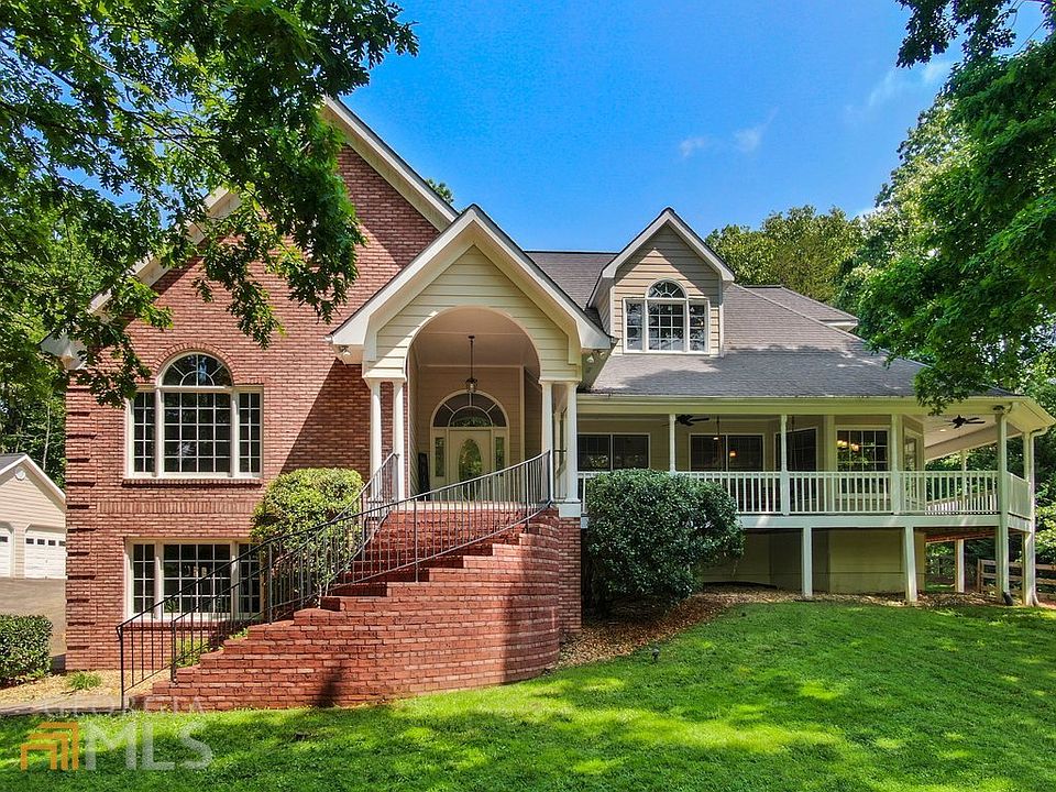 This custom-built home is beautifully placed in a cul-de-sac on a 4.82-acre private mini-estate. The home has an enticing wrap-around porch that overlooks the pond with surrounding natural views. If you are a fisherman, the pond will be a highlight for you as the pond has been stocked. The home's main level has lovely hardwood floors with an expansive living area that adjoins the formal Dining room. Granite countertops, stainless steel appliances, and white cabinets are throughout the Kitchen with an Eat-in area. Master on the main has a sitting room with porch access. A guest bedroom and full bath are located on thePrimary Suite's hallway. Upstairs two large bedrooms share a Jack and Jill bathroom. Separate entrance and garage for the In-Law suite with kitchenette and full bathroom. This lovely home has plenty of parking with 5 spaces for cars in the garages. Fenced in-ground pool is just one of the many features. Large additional building for parking, storage, or workshop as well. This lovely home has an immense amount of storage space throughout. There is no HOA but it is in a well-developed and maintained neighborhood. This gem is in a top-rated school district and only minutes away from the elementary and middle school. Don't miss this tranquil and serene oasis which is close to shopping and restaurants!