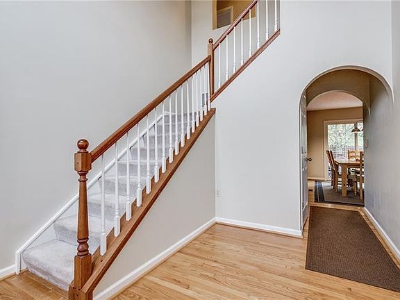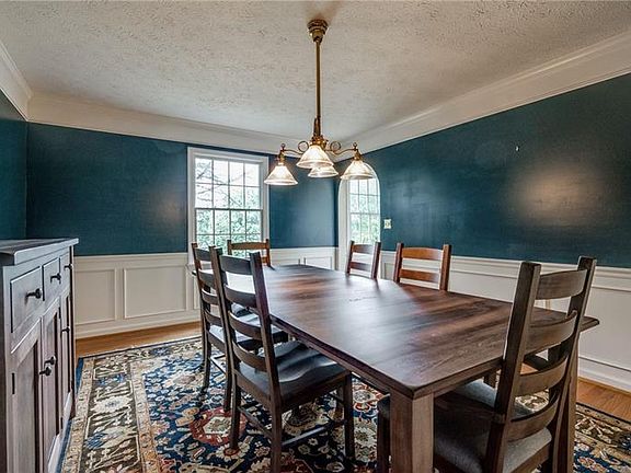 Stately brick facade with keystone accents welcomes you home. Privacy and tranquility are found in the fenced-in level rear yard area complete with fire pit and deck off the kitchen eating area. Gleaming hardwood flooring, arched entries and crown moldings throughout most of the first floor. Center island kitchen boasts granite counters, stainless appliances, desk area and is to the family room featuring the elegant corner gas fireplace. Vaulted ceiling in the master bedroom adds dimension. Master bath offers updated white cabinetry, dual undermounted sinks, marble counter, new wood tile flooring and separate tub and shower enclosure. Dual walk-in closets and laundry chute for convenience. Three additional spacious bedrooms with newer hall bath. Other updates include granite and backsplash in the kitchen (2015), new refrigerator and dishwasher (2017), new interior paint (2018), new roof and driveway (2017), furnace (5 years old) and hot water tank (2 years old). A+ location off Rte 19!
