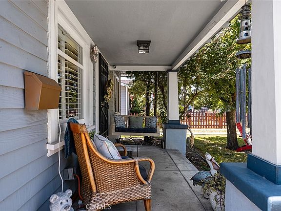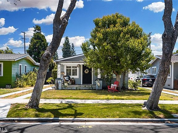 Vintage Craftsman located on one of the best streets in Fullerton!!! Watch the Jacaranda's bloom from your front porch and enjoy all the charm that living in Fullerton's Historical District has to offer. Speaking of charm this two bedroom, one bath home has plenty of that...inside and out!!! Upon arriving you are greeted by a welcoming front porch with a built in swing. Once inside the front door you will immediately feel at home in an inviting living room with an open floor plan to the beautifully updated and spacious kitchen. Complete with stainless steel appliances, granite countertops and counter seating options on two sides. Leading towards the back door is a breakfast nook with a beautiful custom built bar area. The primary suite is quite large with not only double closets but also a wall of built in cabinets and drawers. The Jack & Jill bathroom with its iconic 1920's style floor tile features a bathtub with a shower. The second bedroom is nicely sized as well and conveniently hosts the stackable laundry area in the closet. Easy to maintain plank flooring installed throughout the home. Cool off inside with central A/C with a new compressor or beat the heat in the spacious resort style backyard featuring a large above ground spa/jacuzzi built in 2020! Beyond that is an enhanced shed that doesn't disappoint either! There is a lot of space in this private backyard and plenty of opportunity to make it your own. ADU potential. Living here is the best of both worlds! One of a kind charm that living in Fullerton's Historic District has to offer and the convenience of a house already updated with the necessities of today!