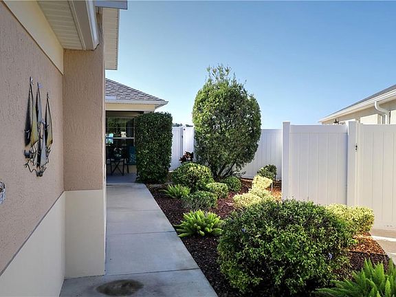 EXCLUSIVE HACIENDAS OF MISSION HILLS with a WATER VIEW second to none!! FURNISHED 3/2 Stretched CHARLOTTE BUNGALOW Villa with an OVER SIZED 2 car garage and straight driveway, poured concrete construction with cement finish. BOND PAID, NO CARPET IN HOME. This Villa is BEAUTIFULLY DECORATED, a spacious kitchen with plenty of beautiful cabinets and QUARTZ COUNTER TOPS, tiled back splash and breakfast bar. OPEN FLOOR PLAN, CROWN MOLDING, large dining area, sitting area and living room, FLORIDA ROOM WITH VAULTED BEAD BOARD CEILING and a MINI SPLIT AIR CONDITIONER with access to the beautiful courtyard with a wrap around birdcage. Spacious master bedroom with tray ceiling, walk in closet and an en suite bathroom with shower. Bedroom 2 with a vaulted ceiling and large closet, Bedroom 3 has a beautiful built in MURPHY BED AND room for an OFFICE. INDOOR LAUNDRY ROOM. YAMAHA Golf Cart is included. Close to Haciendas of Mission Hills Neighborhood Recreation Center and pool, Palmer Legends Country Club and Golf Course and Live Oaks Park. PLEASE WATCH OUR VIDEO OF THIS EXCLUSIVE PROPERTY.