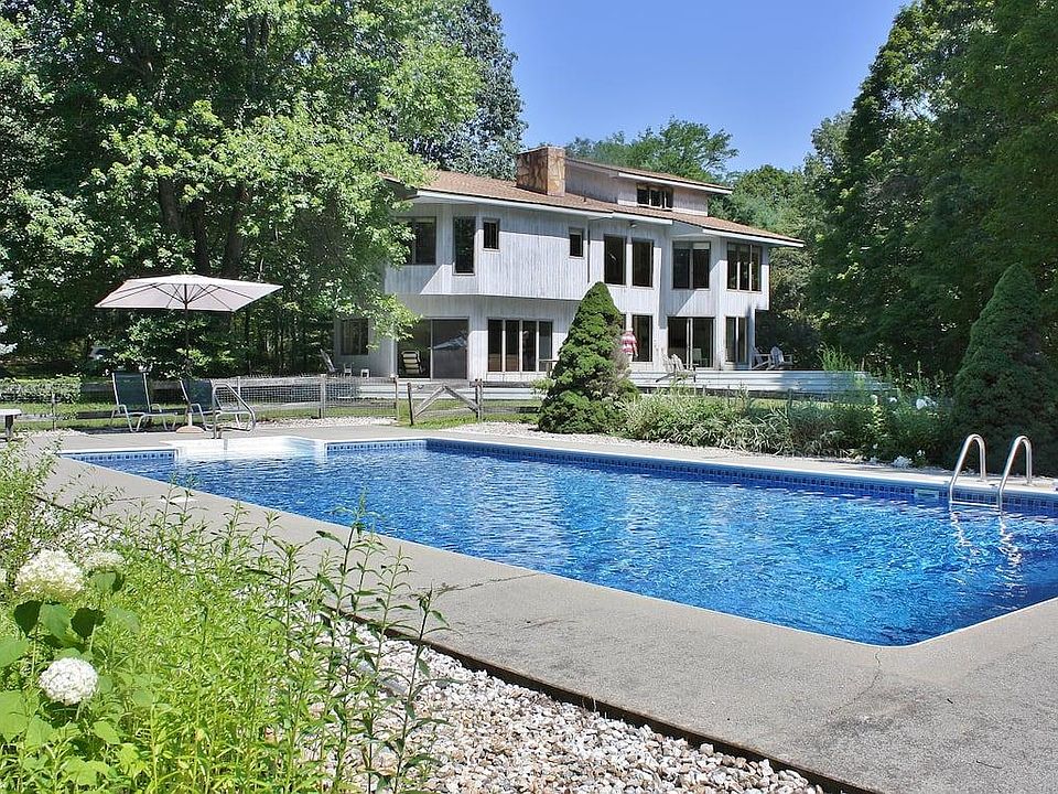 This unique four bedroom contemporary home is available for one year rental in Rhinebeck. Featuring beautiful lake views and inground pool, high ceilings, stone fireplace and eat in kitchen. This home includes simple furnishings with comfortable amenities and sprawling lawns around the house. Neighboring Omega Institute and close to the village of Rhinebeck. Renter is responsible for utilities.