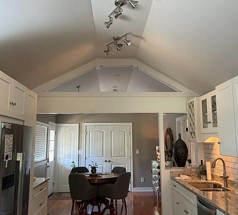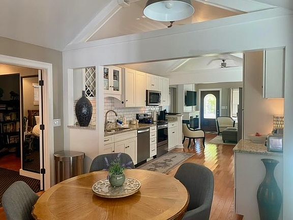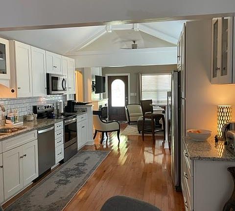 This beautiful home is completely updated and remodeled top to bottom. Move in ready with high end finishes. The remodel created an open floor plan living room, kitchen and dining room with an exposed beam cathedral ceiling. The living room has a remote controlled electric fireplace insert and leaded glass front door. As you move into the gourmet kitchen you find a peninsula for seating open to the living room and stunning granite countertops with high end stainless steel appliances. The dining area has plenty of room for a large table and has a door to the driveway and back deck. The laundry area is enclosed in a closet with premium washer and dryer units which remain with the house. The primary bedroom is spacious with double closets, office area, door to the back deck and lovely on-suite with granite and marble finishes. The second bedroom has close access to full updated marble and granite hall bathroom. There are new hardwood floors throughout the main living area, new electric and plumbing and new windows in the home. The backyard has multiple large attached decks with solar lighting, a storage shed , fully fenced yard with a gate addition , one car garage with new garage opener.Close proximity to Westport Village ,Oxmoor and St.Matthews. Owners are open to limited lease terms and leasing furnishings. Please call for fastest response.