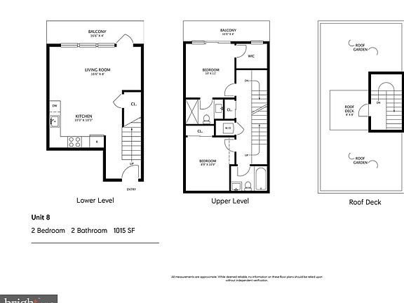 Almost new (2021 construction), THIS UNIT HAS A PRIVATE ROOF DECK! Unit 8 is a 2 BR | 2 BA | 3-Level penthouse and the largest condo in the building. It has outdoor space on all three levels, modern, European-styled finishes, and white oak hardwood floors throughout. 1 private parking spot included behind the development. This 8-unit building was new construction by Bloom Residential in 2021, each unit equipped with fire sprinkler system. The second level includes both bedrooms with the primary bedroom featuring an en-suite bath, walk-in closet and a second private balcony. The condo includes a third private outdoor space on the roof deck level overlooking a green roof on each side. Low condo fee, low taxes, and prime location. Builder Home Warranty conveys.