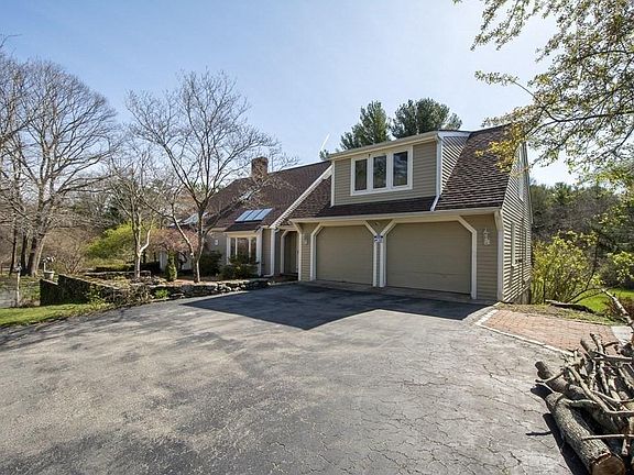 Welcome to Norwell! One of the South Shore's most sought after towns. This custom built Cape located on a retreat lot with 5 acres with two ponds, one has a fountain. This home has 4 bedrooms and 4 and a half baths. The master bedroom is located on the first floor, featuring an oversized master bath. The remainder of the first floor is an open concept, with hardwood floors in the kitchen and living room. There are three bedrooms upstairs both with spectacular views of the pond and scenic grounds. One of the bedrooms upstairs has a private entry to the first floor with access to an oversized full bath. This would be a great space for guests, au pair, or an in-law suite. The entire basement is a walk out which includes, a gym, an office featuring a fireplace. There are several other rooms and a glass greenhouse or solarium with an outdoor gardening bench. Updates are listed on the attachment to the listing. This is a beautiful retreat lot located at the end of a tree lined driveway.