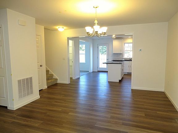 This lovely townhouse is nestled in a new community at the back of a residential street just minutes to local schools/college, major roadways, shopping & more. You'll find a generous-sized living room with ceiling fan, dining room & a classic white kitchen with granite countertops, stainless appliances, handy center island & endless storage with a lazy-susan cabinet & walk-in pantry. 1st floor flex space for an office/study, etc. & rear deck for outdoor relaxing, cooking or entertaining. 3 bedrooms & 2.5 bathrooms including a master suite with large walk-in closet, double-bowl vanity, nicely tiled shower with built-in seat/ledge & shelving for linens. Convenient 2nd floor laundry room and basement for extra storage. 1-year contract, renews month to month after first year.