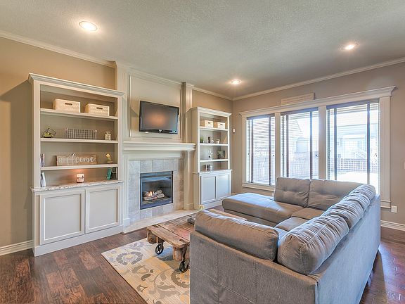 Former model home for sale in Timber Trails neighborhood. Newer home is fantastic move-in value with great amenities. First floor open plan living space with beautiful living room featuring built-ins & large windows. Kitchen with granite tops, large island, stainless appliances, tiled backsplash. Casual dining with exit onto covered patio. Pocket office room with beautiful barn door entry. Large main floor master suite with high end private bath & walk in closet. 2nd floor with 2 bedrooms and bath for kids & guests