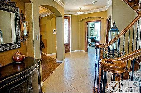 Gorgeous custom home on corner lot showcases tall ceilings with 19ft stone accent wall & wood floors. Multiple living & dining spaces & separate media & gameroom for entertaining. Kitchen has SS appl, gas cooktop, an island, custom cabinetry with open concept. Private master suite, spacious rooms, extra study, den or craft space & decorative wall palette. Garage has custom flooring. Community has pool, clubhouse, pond & playground. Move In Ready!