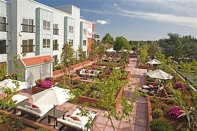 Greenwood's premium condo available NOW! -2 blocks from trending Restaurants & Services. This 1 bdrm w/office features HW floors, gourmet kitchen w/granite counters & top of the line SS Appl. New paint & carpet in bdrm w/walk-in closet. Unit flooded w/light from West facing windows overlooking private rooftop patio space & garden. Amenities-Private Park, Rooftop Terrace, BBQs, Fountain, Media Rm, Billiards, 24hr Gym, Bike Storage, Elevator, Cable & Wifi. 2 Parking spots & storage available.