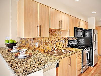 Large studio in the heart of Greenwood, with excellent community features! Granite slab countertops, Hardwood floors, granite tile floors in bathroom, stainless steel appliances, w/d in unit. Direct access to common deck with 2 grills, patio furniture, and fountain! Common area features grand entry with high ceilings, lounge, card table, and a gym with flat screen tv's. Secure building. Convenient access to Seattle and I-5.