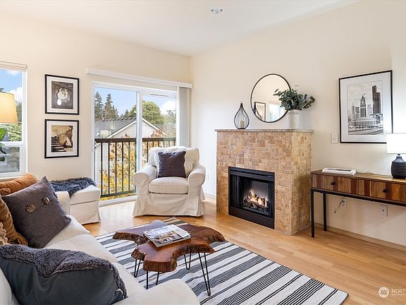 Welcome to this spacious top-floor, North facing unit in the modern Sapphire building. Located in the heart of Greenwood, enjoy easy access to amazing bars, restaurants, & grocery stores. Combining modern living w/ comfort and convenience, this unit features a large primary suite w/ walk-in closet & attached bath. Beautiful kitchen equipped w/ granite countertops, stainless steel appliances & bar seating perfect for entertaining. The bright living room boasts a cozy fireplace & impressive mantle. Large second bedroom & full bath, in-unit washer & dryer. Benefit from onsite amenities including fitness center, pet area & large outdoor deck. Secured garage w/ tandem parking for two. Fresh paint and carpet make this home truly move-in ready!