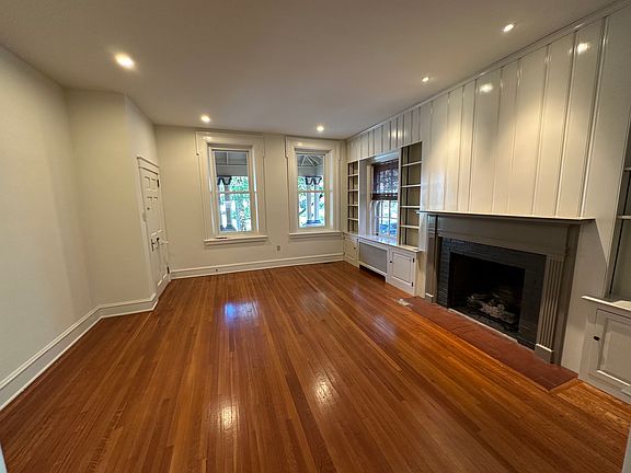 Gorgeous Large renovated First floor Apartment in Historic Lancaster City. 1400 sq ft ..entire first floor of building. LARGE front porch , Two-bedrooms, living room, formal dining room. working gas Fireplace. Sunroom with built in cabinets off master bedroom. Built in cabinetry in living room. Built in cabinetry in dining room. Newly renovated kitchen with Quartz countertops, new cabinetry, garbage disposal. Stainless steel appliances with icemaker. Hardwood floors throughout. Many closets. Central Air. All new windows and exterior doors. LARGE PRIVATE brick patio and common back yard. NOTE. The living room in the picture shows dark walls with pine boards. All of that is being repainted beautiful contemporary colors the week of August 20. Rent includes HEAT, trash, heater maintenance. private parking for one car Apartment has central air and the owner manages service on AC unit. One year lease. Base security deposit is 1.5 months tenant pays for electric, gas for hot water and cooking., Water, cable Additional security deposit required for pets. One pet allowed and must be first approved by property owner.