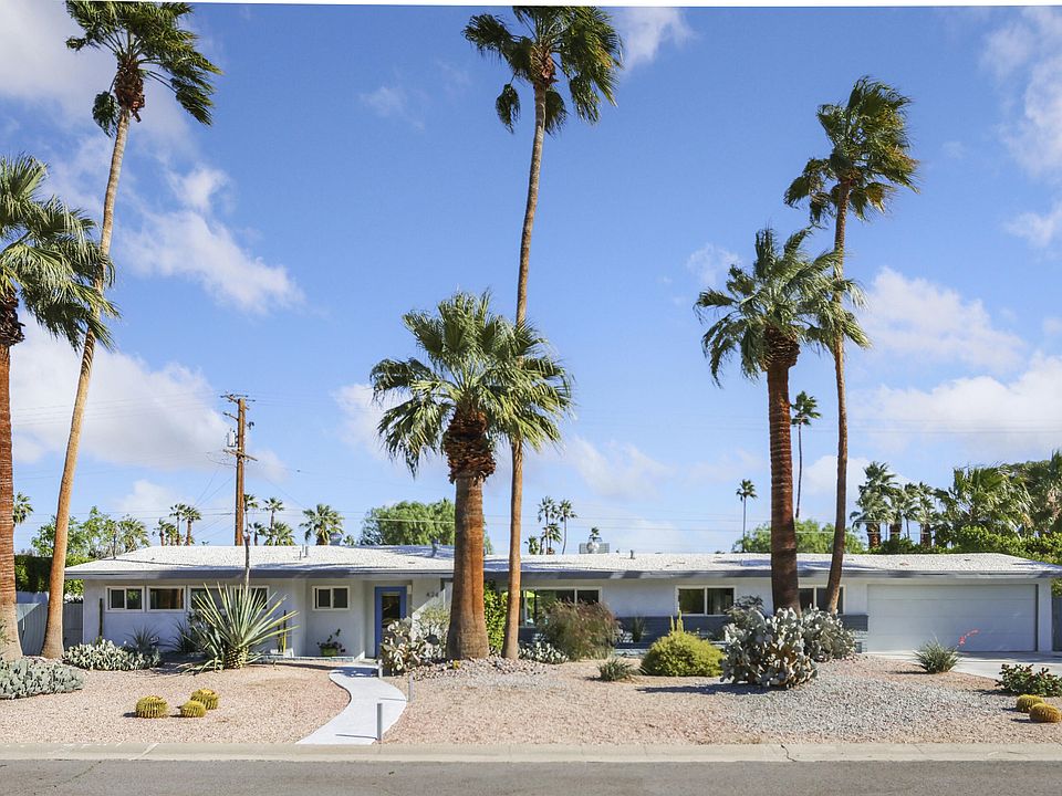 Remarks : This Mid-Century 4BDR-3BA home on fee land (you own the land) offers an expansive front yard with captivating panoramic mountain views and room for expansion. Displaying all elements of mid-mid-century architecture, this home embraces the indoor-outdoor Palm Springs life-style essence. Ready to move-in and enjoy the open concept living room with fireplace and large gourmet kitchen with quartz countertops, stainless appliances and modern backsplash. Among the recent updates, this home features newer HVAC and a completely transformed and professionally designed landscape & backyard with the perfect vibe to relax by the outdoor fire-pit and shaded dining lounging areas. Previous updates include windows & doors, new tile throughout living areas, carpet in bedrooms, kitchen with newer cabinets, new cabinets in the bathrooms, counters and tile in showers. The 4 bedrooms, 3 baths layout could work perfectly for a full time resident or a buyer seeking for the perfect vacation rental home in the desirable Sunrise Park neighborhood. Two bedrooms have direct access to the beautiful backyard patio and pool area. 2 car garage + RV parking. Be sure to view 3D virtual tour.
