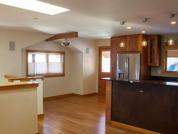 Rare and unique modern NE neighborhood home. Complete remodel done in 2009-2010. Radiant heated floors, corbond spray foam insulation, full house LAN (wired internet) with ceiling and wall speakers upstairs, downstairs and outside. 4 zone sprinkler/drip system for lawn and bushes and trees. Large outside storage area under back deck that has great views of the Bridgers.