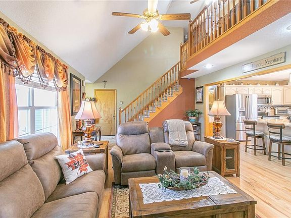 This amazing home on 10.16 acres with huge barn/shop is ready for you! You won't believe all the owner has added, owner's pride truly shines throughout! Items completed for you include-new roof (2019), new siding and gutters (2019), complete custom kitchen remodel with gorgeous oversized island and custom pantry (2022), remodeled primary bedroom and bathroom, basement remodel with new carpeting, new carpeting on the stairs, new interior paint upstairs, new hot water heater (2019), updated bathrooms and more. The complete list is available! There was also a new barn addition added in 2017 (30x40x12), concrete floor, 11 foot roll doors and stubbed for water. The back barn was remodeled (30x50x10), concrete floors, spray foam insulation, HVAC, 200amp service, 110 outlets, 220 amp outlets and 30 amp outlet for compressor/AC. The shop is big enough for an RV and you can pull all the way through! The above ground pool is just outside the amazing sunroom (off the kitchen) and owners added a tiki hut and privacy fencing. The bar also has electricity. You'll love feeding the catfish in your own pond! This one is a must see for the price!! Prepare to be wowed!!