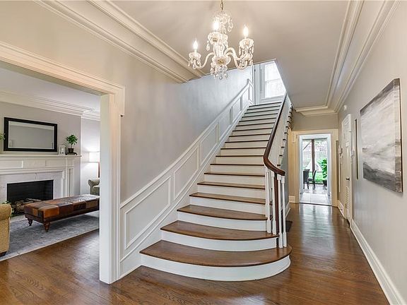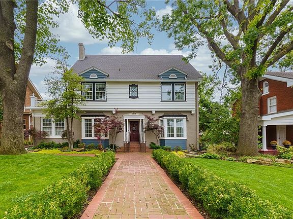 Classic Colonial Heritage Hills home on tree-lined block. Once the home of First National Bank chairman C.A. Vose; this home features a traditional entry with wood flooring and painted woodwork. Formal living and dining areas with bay windows which were added in the 1940s. Light-filled sunroom off formal living room would make nice study or playroom. Remodeled kitchen with stone countertops and walk-in pantry. Amazing great room designed by famed architect George Seminoff in the 60s features a brick wall, wood cabinetry and floor-to-ceiling windows. Sleek primary suite with custom bath featuring a steam shower and walk-in closet. Two additional bedrooms on second floor with bath. Third floor has two bedrooms & bath making a total of five bedrooms. Basement includes a nice den with fireplace and expansive utility & storage room. Covered outdoor living space leads to immaculate yard and garden. Incredible home with versatile floor plan within walking distance to 23rd Street and Midtown.