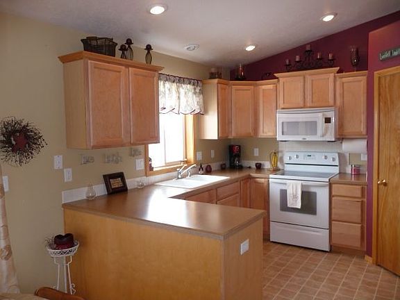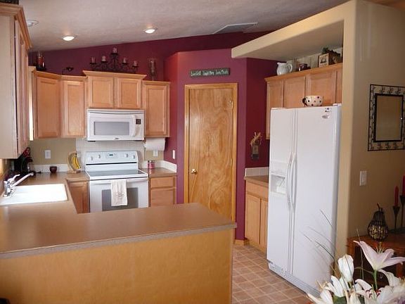 4 bedroom, 2 bath, 2 car garage. Vaulted ceilings, arched doorways, nice carpet. Open kitchen, breakfast bar, refigerator, dishwasher, Maple cabinets with crown molding. Master bath features a Garden Tub, dual sinks. Fenced yard, auto sprinklers, corner lot close to park.