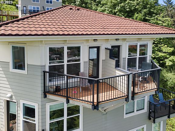 Enjoy morning coffee among the clouds with panoramic mountain and city views from your private deck at this amazingly located NW Portland condo. Light flows through the many windows giving the sense that this bright and stylish one-bedroom unit is floating above the city. The east-facing 180 degree views provide breathtaking sunrise vistas above mountain ranges. This lovely 1 bed / 1 bath unit sits just a half flight of stairs above the deeded parking space and features new hardwood flooring, a washer / dryer, and a bright open layout with a counter peninsula which is perfect as a breakfast bar or work area. A short walk to Washington Park and all the shops and restaurants on NW 23rd and the Alphabet District. This unit boasts some of the best views in the complex. You don't want to miss this one!
