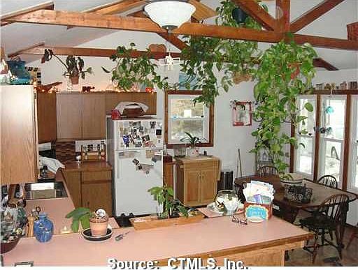 PRIVATE ranch on 1.05 acres with stonewall boundaries has a 2011 ROOF, newer vinyl & windows & furnace. LARGE eat in kitchen w/ appliances , breakfast bar & fireplace. Livingroom has slider leading to deck. Masterbedroom suite. Walkout basemnet. Shed.