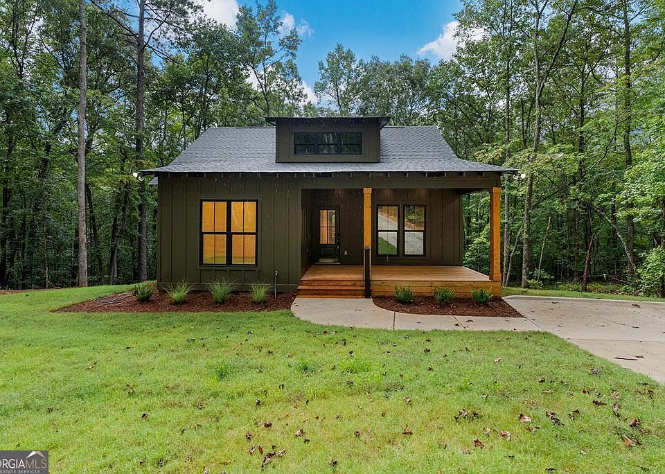 Welcome to 424 Oak Drive, a brand-new Craftsman-style bungalow perfectly positioned in the heart of Pine Mountain. Nestled at the end of a quiet cul-de-sac, this home offers unmatched privacy and a picturesque setting that backs directly up to F.D. Roosevelt State Park. From the moment you step onto the wide front porch, you'll feel the charm and comfort this home was designed to deliver. Inside, soaring ceilings and an open-concept layout create an inviting atmosphere, blending classic charm with modern design. The spaces flow seamlessly from the designer kitchen to the dining and living areas, and out to the incredible outdoor living spaces. The kitchen is the true centerpiece, featuring an 8-foot quartz-topped island, custom cabinetry, and sleek modern finishes. The living room, anchored by a cozy fireplace, is filled with natural light and offers peaceful views of the protected woods beyond. This home strikes the perfect balance of beauty and durability with LVP flooring throughout the living areas and bedrooms, slate-look tile in the baths and laundry, and carefully curated lighting, trim, and fixtures. The covered back porch is a private retreat all its own, complete with a fireplace, TV hookups, and elevated, treehouse-style views of the State Park. The primary suite enjoys wooded views and a spa-like bath with a walk-in tiled shower, frameless glass door, and Carrara marble vanity. Additional highlights include a 30-year architectural shingle roof, a generous walk-in crawl space for abundant storage, and a long driveway with space for multiple vehicles. Blending timeless character with the natural beauty of Pine Mountain, this home offers a rare chance to live alongside one of Georgia's most beloved State Parks. Whether as a full-time residence or a peaceful getaway, this property is truly one of a kind.