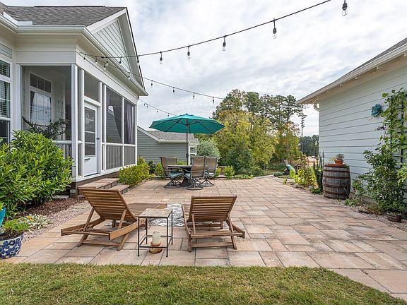 This BETTER than New home in highly sought-after Holding Village sits high in the front but flat in the back with just 2 steps up from your garage entrance. This home features a spectacular custom designed backyard patio with a screened porch that creates the perfect setting for unforgettable gatherings and cozy evenings under the stars. First-Floor offers a well-thought-out floorplan including a first-floor owner's suite with spa like bathroom, ensuring tranquility and convenience. The gourmet kitchen with a huge island, gas cooktop, and stainless steel appliances, beckons culinary enthusiasts to indulge in their passion. The welcoming family room is open yet cozy with built-ins and a gas fireplace, this space is designed for making cherished memories. Upstairs, discover a spacious bonus room and two additional bedrooms. Don't miss the walk-in attic storage.Enjoy the community pool, neighborhood walking trails around Holding Lake. Holding village is close to shopping, restaurants & grocery stores. This gem is in a great location convenient to everything Wake Forest. Welcome Home!