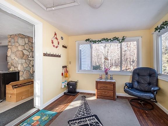 Charming Cape style home with large backyard on 1.41 acres. Entry through sun porch to country kitchen with five-burner gas stove, dishwasher, microwave and refrigerator. Open concept leads to dining room. Large front/back living room carpeted. First floor home office or guest bedroom and full bath. Second floor includes master bedroom with walk in closet and second closet. 2 additional bedrooms on second floor plus full bath. Finished family room in basement.