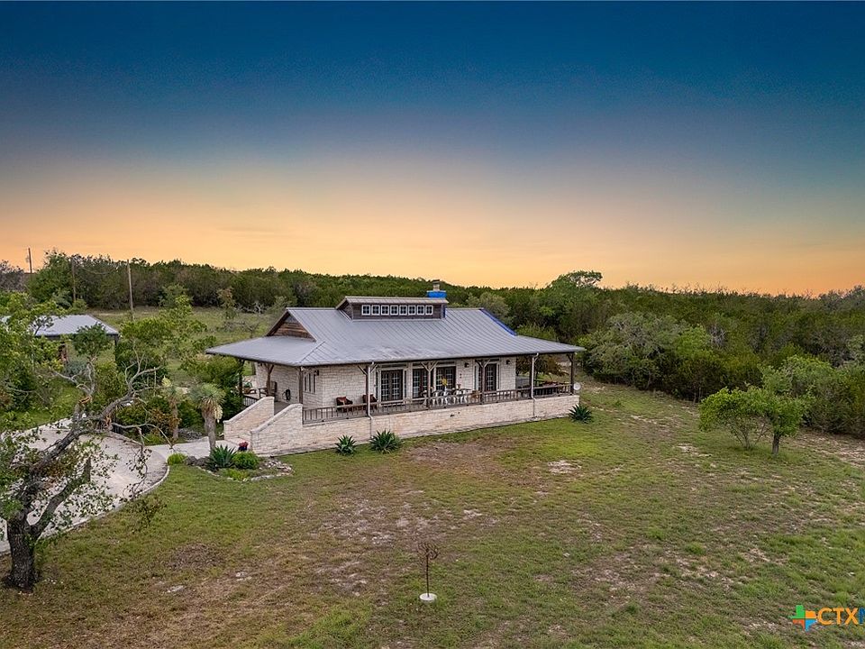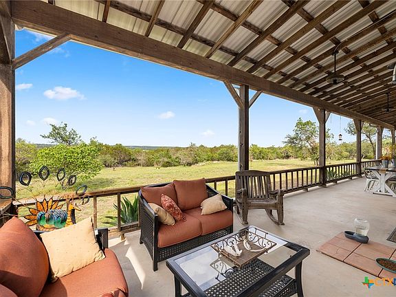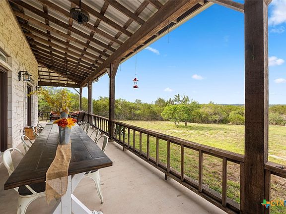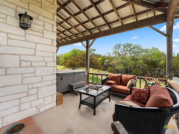 Nestled in the heart of the Texas countryside, this enchanting 2-bedroom, 2-bath rock home is a rare blend of elegance and rugged beauty. Every inch of this property whispers quality and character—from the hand-laid Saltillo tile floors that flow warmly throughout the home to the sweeping wrap-around porch that invites morning coffee, sunset cocktails, and everything in between.