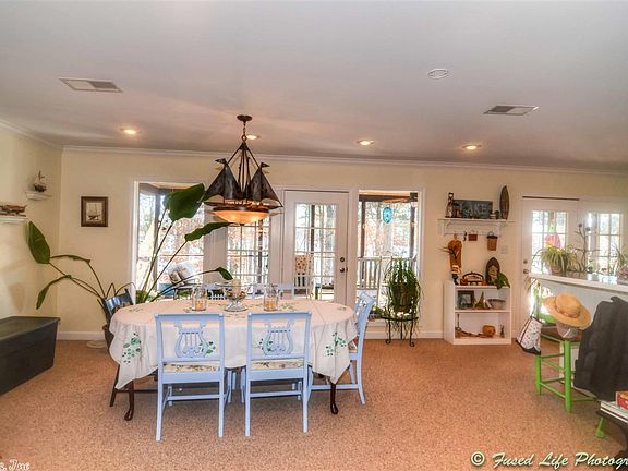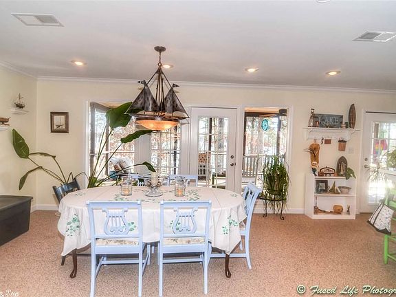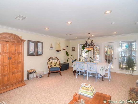 This is a fun lake house with a great view & access and your boat slip right out the back door. Located on Higden Bay, one of the most desired areas on the lake. So bright & cheery, you will feel the stress melt away the minute you walk in the door. Open floor plan, yet different seating areas for everyone. Has been renovated & each bedroom has a bathroom. Large screened decks on both floors. Would make a great vacation rental or home for two families!