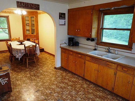 Check out this convenient edge of town location yet private setting! You'll appreciate the home's charming arched doorways and built-ins, and love the affordable price allowing you to make this your very own! Main floor bedroom and two upper level walk-thru bedrooms. 4 Season front porch. Natural gas furnace; city water & sewer; 200 AMP electrical breakers. 2 Car 20x20 detached garage. Property will be Sold AS-IS; seller never lived at property. Tenant occupied.