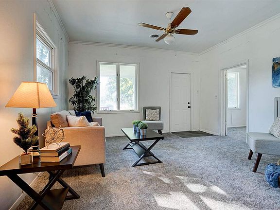 Recently remodeled home with several great updates! A large front porch welcomes you into the updated living room with all new flooring and fresh paint. Formal dining space leads into the updated kitchen with stainless-steel appliances including a new microwave, dishwasher, and refrigerator. Three bedrooms on the main level, all with new flooring and fresh paint. Two bedrooms share access to a large closet and one bedroom has bathroom access. Remodeled bathroom with a sliding barn door, new tub surround, new vanity, and new toilet. Walk-up attic great for storage or future expansion. First floor laundry. Some newer lighting fixtures and some newer windows. All new exterior doors, new roof, and freshly painted exterior. Roomy breezeway/mudroom leads into the recently enclosed one car garage with new opener. Deep backyard with additional parking and a large storage shed.